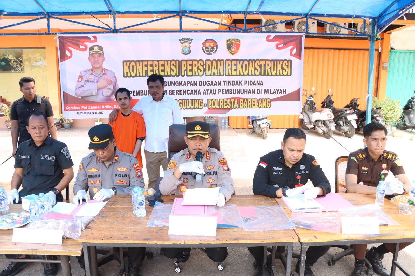 Polresta Barelang | BENEWS – Polresta Barelang menggelar konferensi pers dan Rekonstruksi terkait pengungkapan kasus tindak pidana pembunuhan berencana yang terjadi pada Senin, 2 Juni 2025 di kamar 201 S Kostel Hotel, Kelurahan Sagulung Kota, Kecamatan Sagulung, Kota Batam. Kamis (31/07/2025).