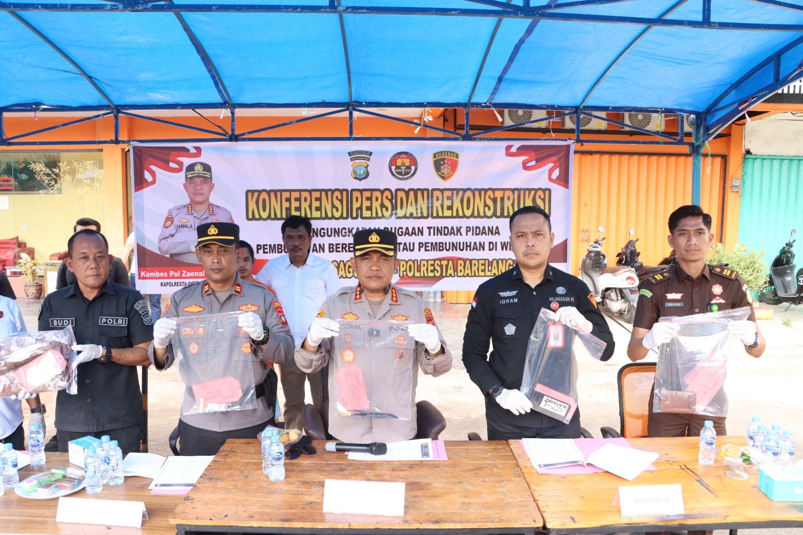 Konferensi pers dan Rekonstruksi ini dipimpin langsung oleh Kapolresta Barelang Kombes Pol Zaenal Arifin, S.I.K., didampingi Kapolsek Sagulung Iptu Husnul Afkar, S.H., M.H., Kanit Reskrim Polsek Sagulung Iptu Anwar Aris, S.H., Kasi Humas Polresta Barelang Iptu Budi Santosa, S.H., serta turut hadir Kasi Pidum Kejaksaan Negeri Batam Iqram Syah Putra, S.H., M.H., Jaksa Penuntut Umum Muhammad Arfian, S.H., M.Kn., dan kuasa hukum tersangka Dian P.G. Simamora, S.H., serta jajaran penyidik Unit Reskrim Polsek Sagulung.