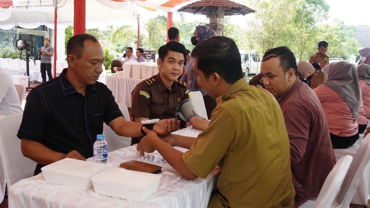 BENEWS | Tanjungpinang -.Wakil Kepala Kejaksaan Tinggi Kepulauan Riau Sufari, S.H., M.Hum., bersama jajaran Kejaksaan Tinggi Kepulauan Riau mengikuti kegiatan Donor Darah dan Pemeriksaan Kesehatan Gratis di Aula Sasana Baharuddin Lopa Kejati Kepri, Selasa (16/07/2024).