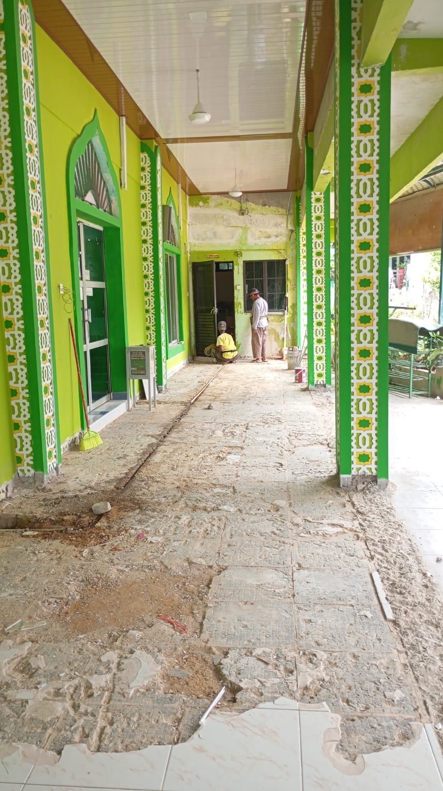 “pagi ini di masjid Al-Ridho, pemindahan bongkahan bangunan utk nimbun tempat wudhu diratakan dengan lantai induk masjid…,” dikutip dari postingan pengurus RW.