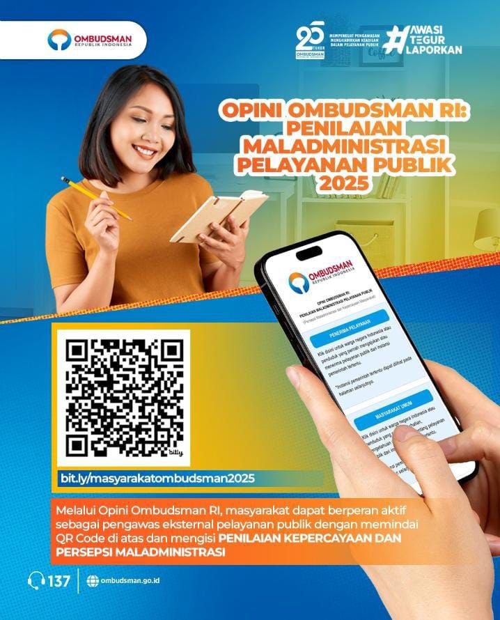 Untuk diketahui bersama, Penilaian Maladministrasi Pelayanan Publik diselenggarakan pada Oktober 2025 hingga November 2025.