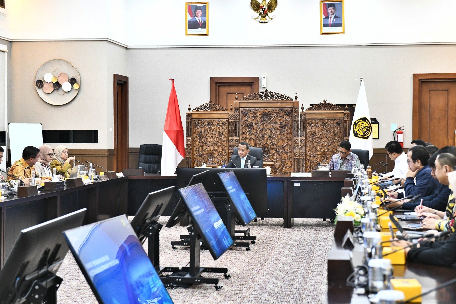 Menteri Energi dan Sumber Daya Mineral (ESDM), Bahlil Lahadalia memimpin rapat dengan PLN Batam dihadiri langsung Direktur Utama PLN Batam Kwin Fo.