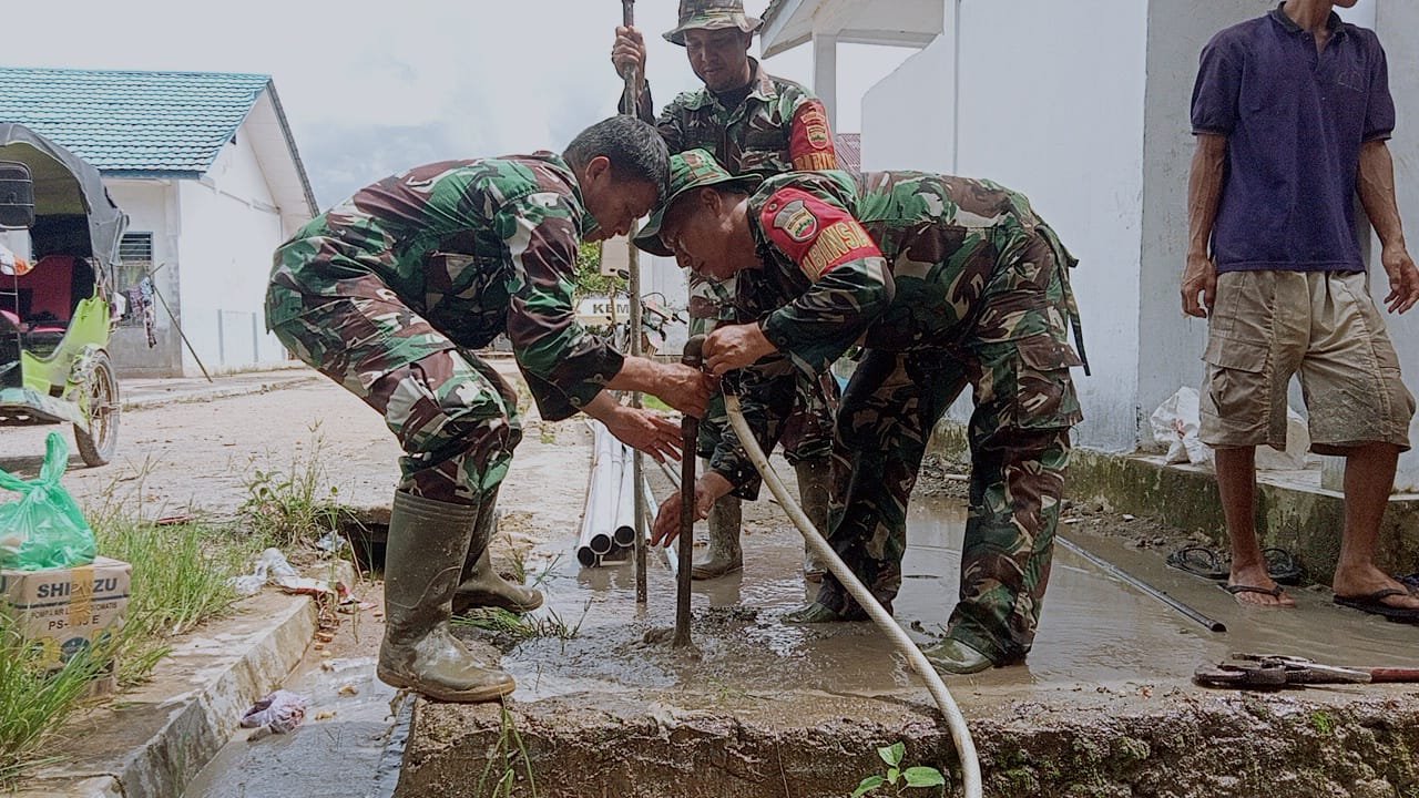 Kodim 0211/Tapanuli Tengah melaksanakan pembuatan sumur bor untuk memenuhi kebutuhan air bersih bagi warga pengungsi yang berada di SMA Negeri 1 Tukka, Kecamatan Tukka,