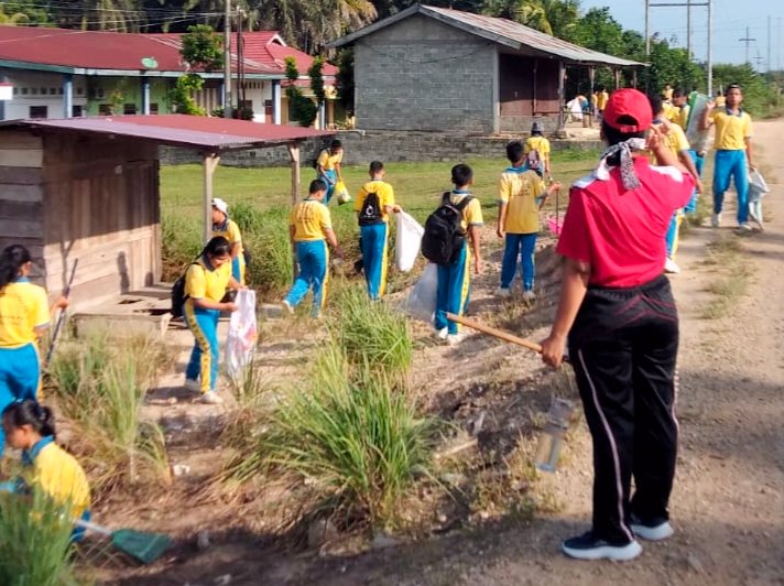 Kampar Riau | BENEWS -Dalam menyukseskan Gerakan Indonesia ASRI (Aman, Sehat, Resik dan Indah) yang diserukan Presiden Prabowo Subianto guna menjaga lingkungan bersih, Perguruan ASISI melaksanakan GORO disekitar lingkungan kota batak, desa pantai cermin, Kabupaten Kampar propinsi Riau. Sabtu (28-02-2026)