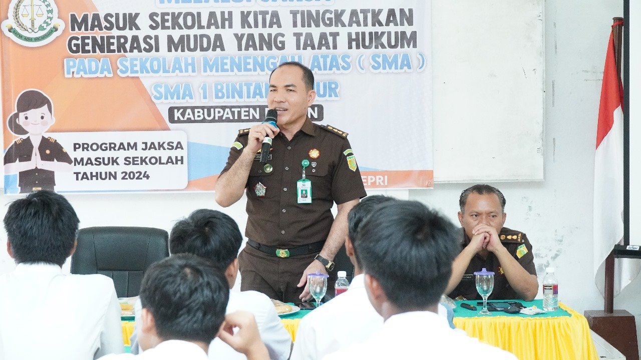 BENEWS | Kejati Kepri – Kejaksaan Tinggi Kepulauan Riau melalui Program Pembinaan Masyarakat Taat Hukum (BINMATKUM) pada kegiatan Penyuluhan Hukum telah menyelenggarakan kegiatan Program Jaksa Masuk Sekolah (JMS) di SMA Negeri 1 Bintan Timur dan SMK Negeri 1 Bintan Timur dengan mengangkat tema tentang, “Pencegahan Penyalahgunaan dan Peredaran Narkotika serta Anti Perundungan (Bullying)”.